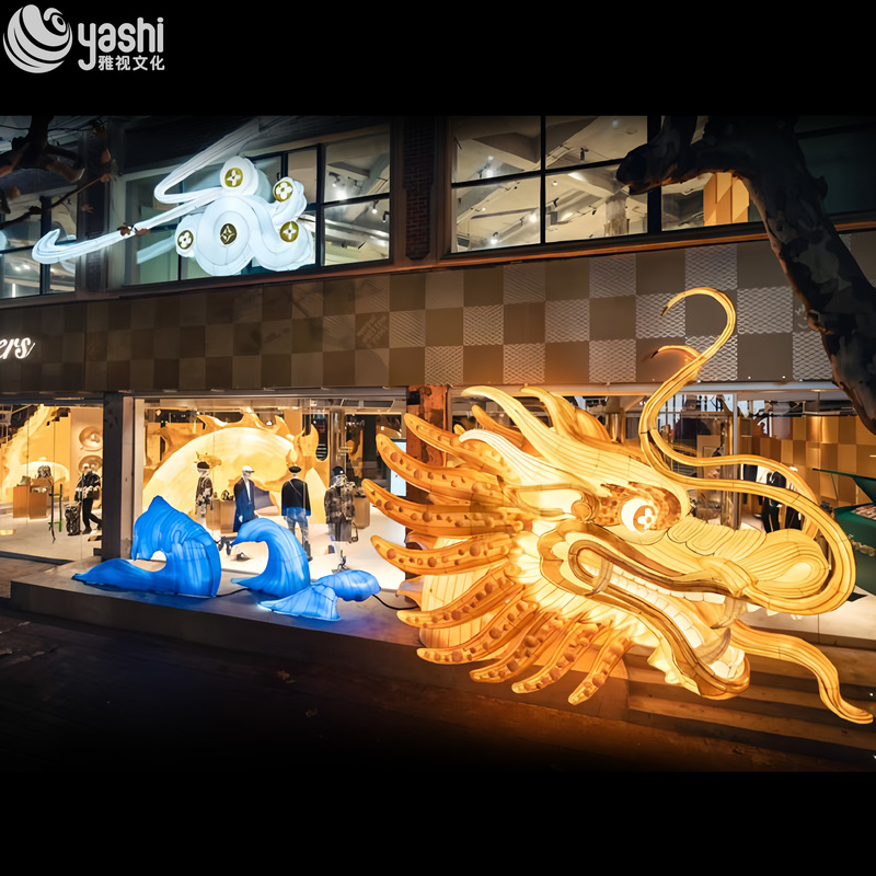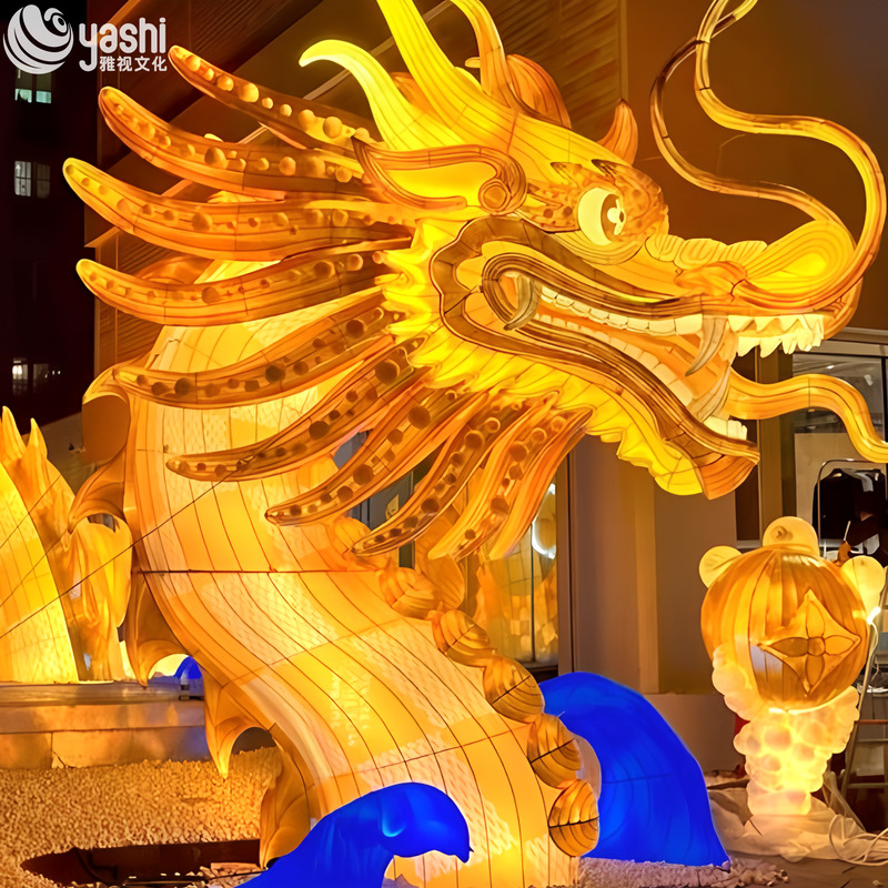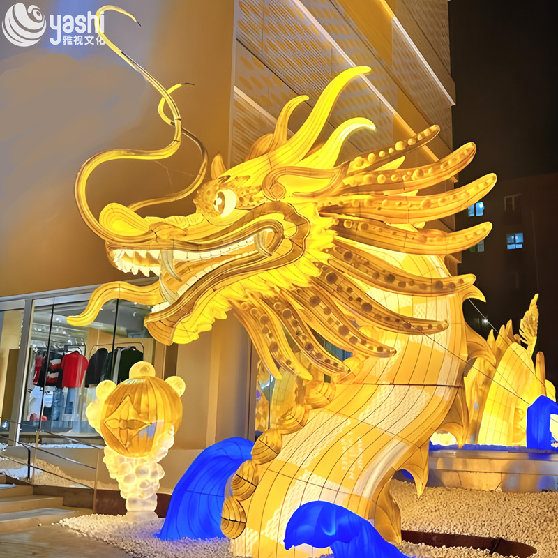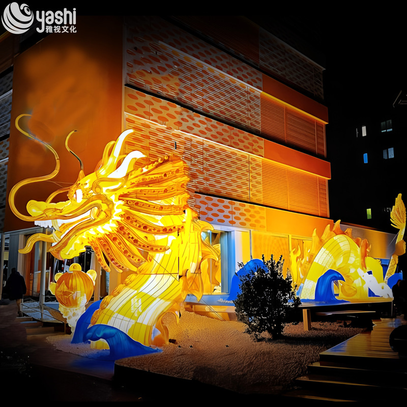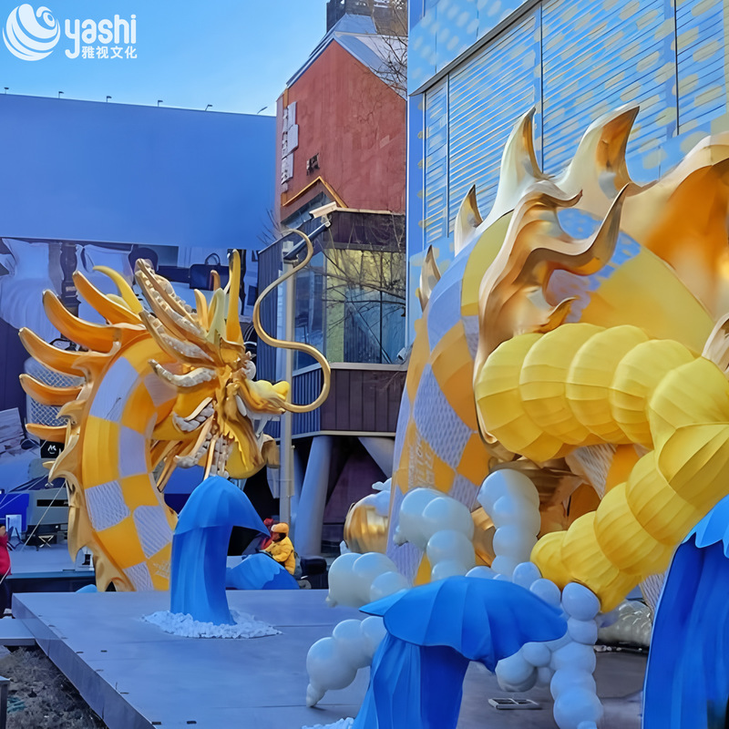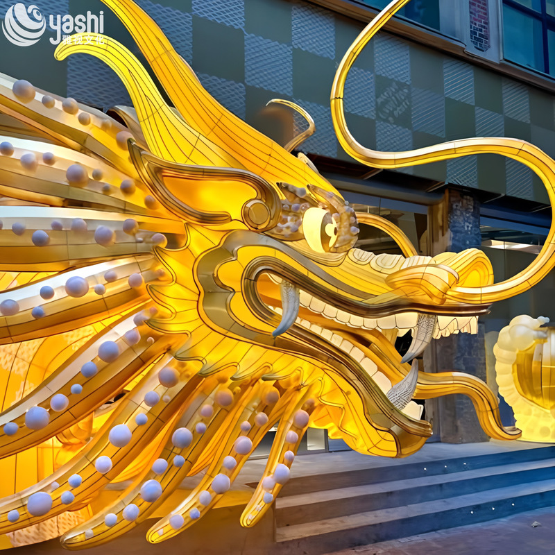 Это великолепная инсталляция в виде золотого дракона, культовый символ власти, процветания и удачи в китайской культуре. Тщательно изготовленная вручную, она отличается сложными деталями, такими как мерцающая чешуя, динамичные усы и внушительное присутствие, освещенное теплым, сияющим светом. На фоне современных архитектурных фонов она органично сочетает традиции с современной эстетикой. Идеально подходит для коммерческих площадей, культурных мероприятий и активации брендов, этот фонарь не только служит захватывающим дух центром, но и делает сильное культурное заявление, привлекая толпы и наполняя пространство атмосферой величия и благоприятной энергии, что делает его исключительным выбором для мест, стремящихся произвести неизгладимое впечатление на международную аудиторию.