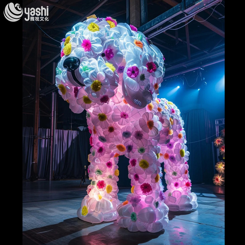 Материал: Внутри - антикоррозийный стальной каркас, медный сердечник, акрил, полупрозрачная ткань, гирлянды.