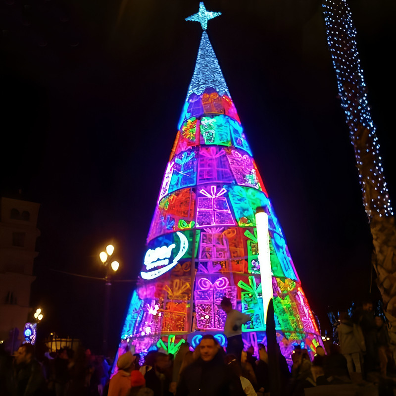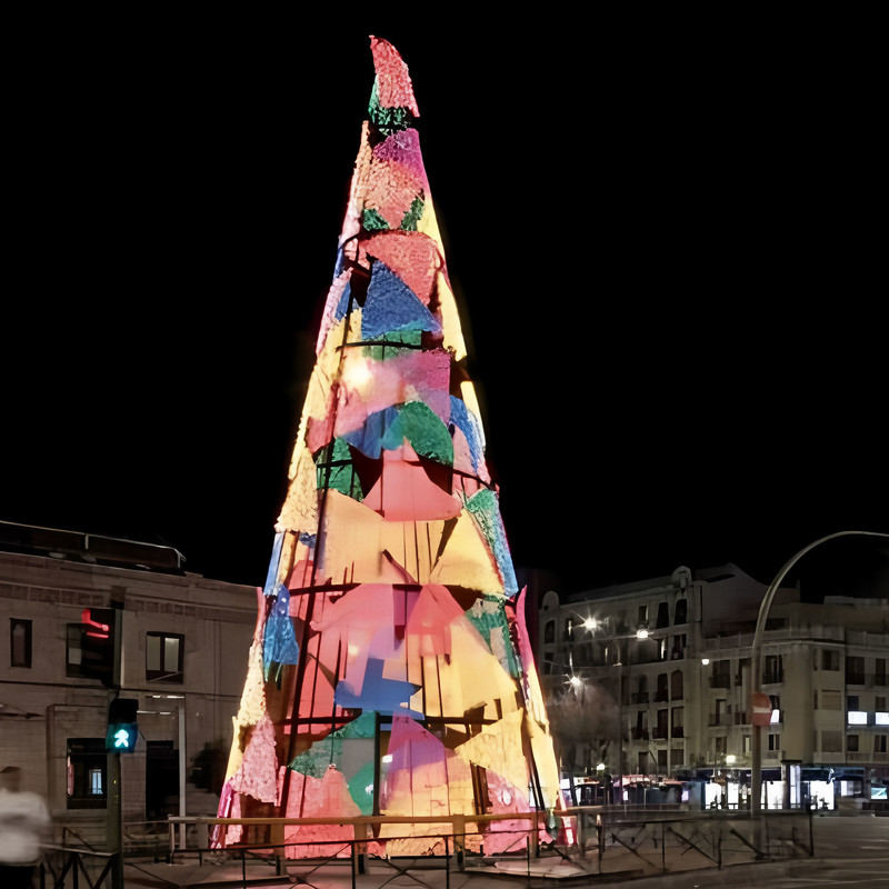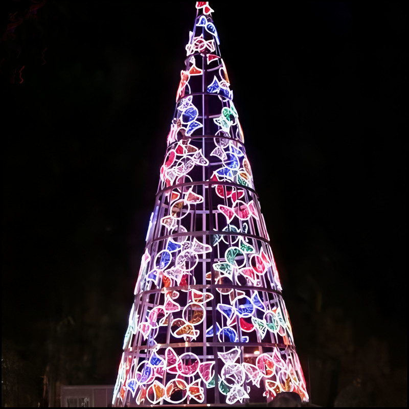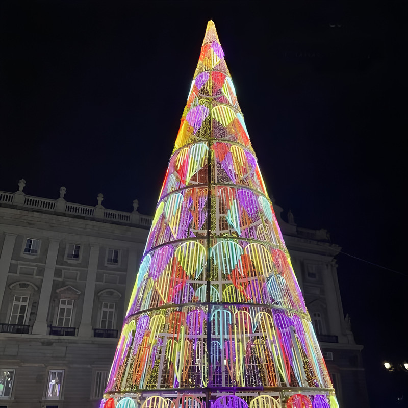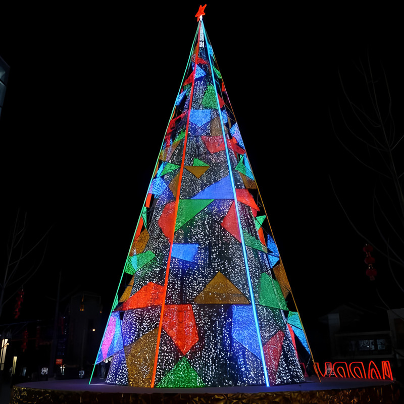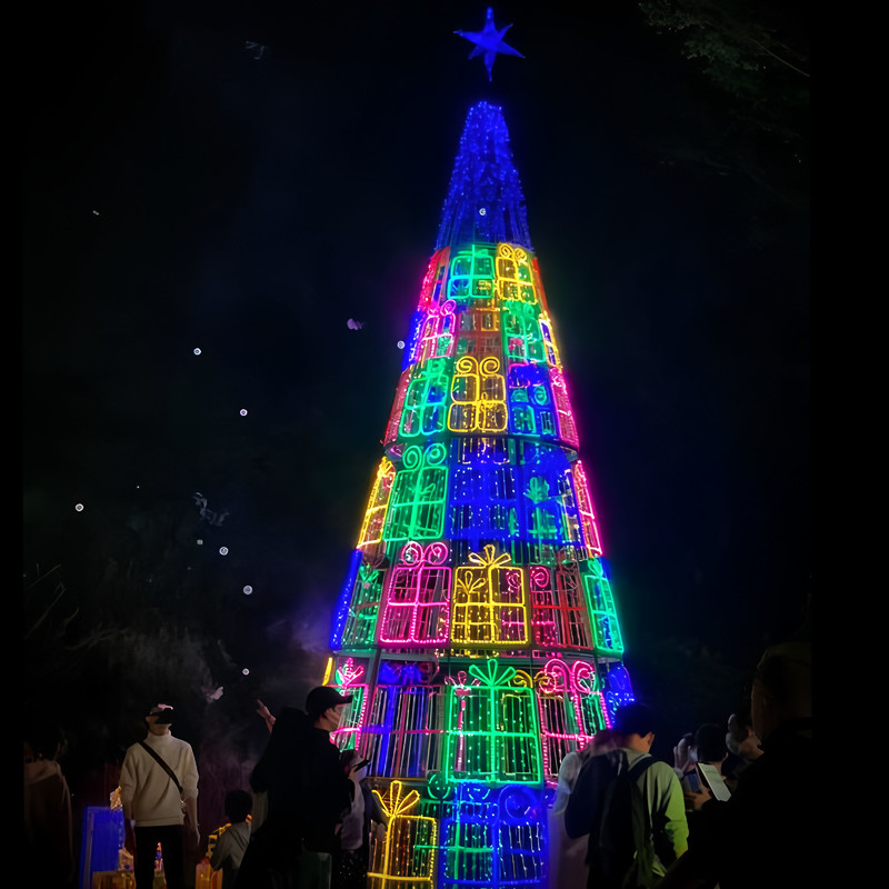 These glowing Christmas trees are iconic symbols of Christmas, deeply rooted in Western culture. Christmas tree-shaped lanterns combine Chinese craftsmanship with Western festive themes. These Christmas trees are created using Zigong's traditional craftsmanship techniques, featuring realistic shapes and soft colors.