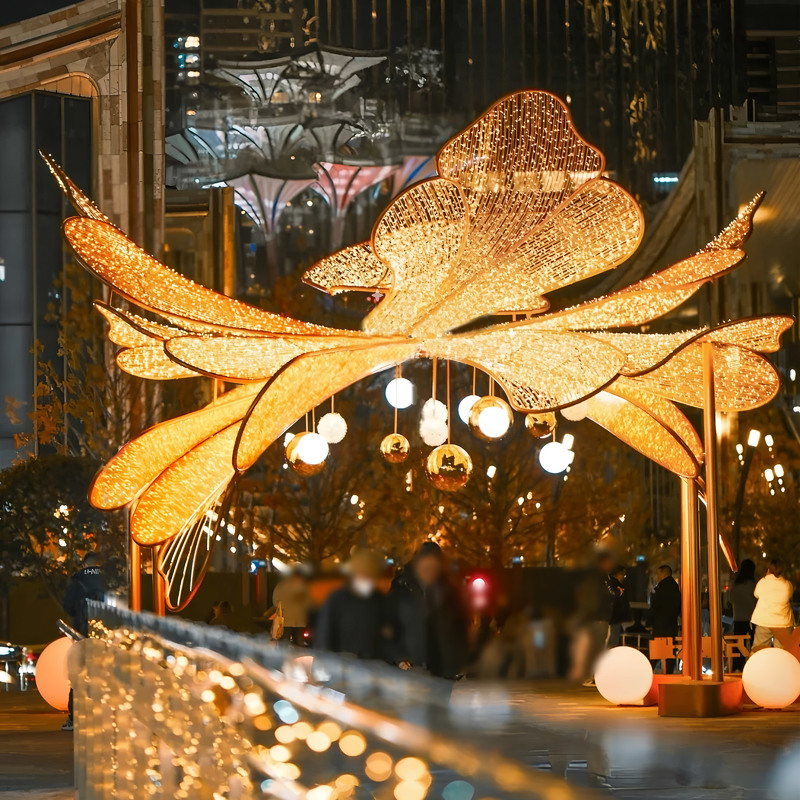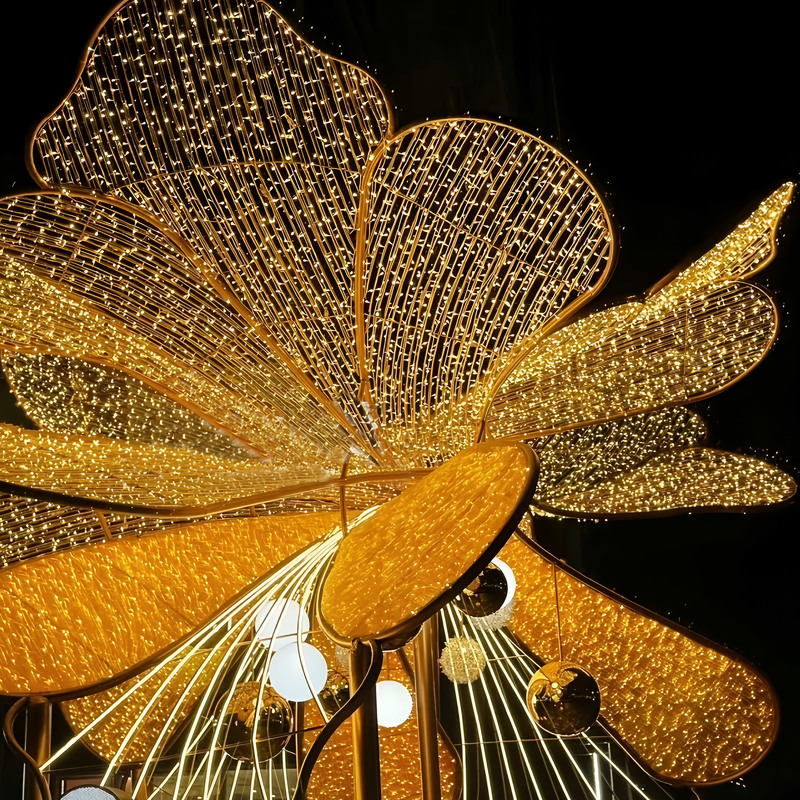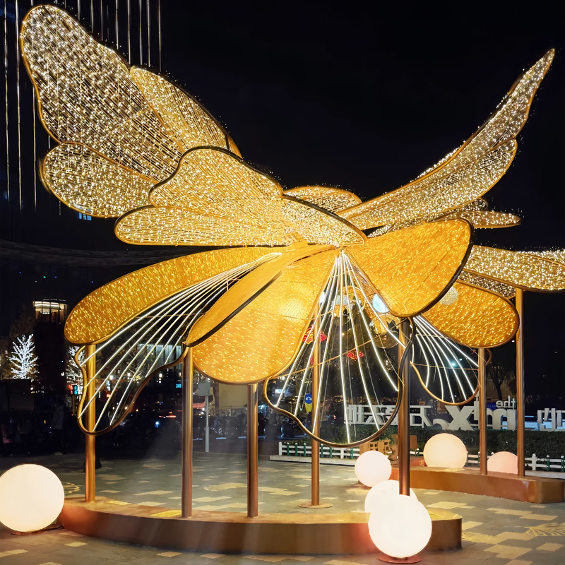 Material: Internal is rust-proof steel frame, copper core wire, acrylic, semi-transparent fabric, light strings.