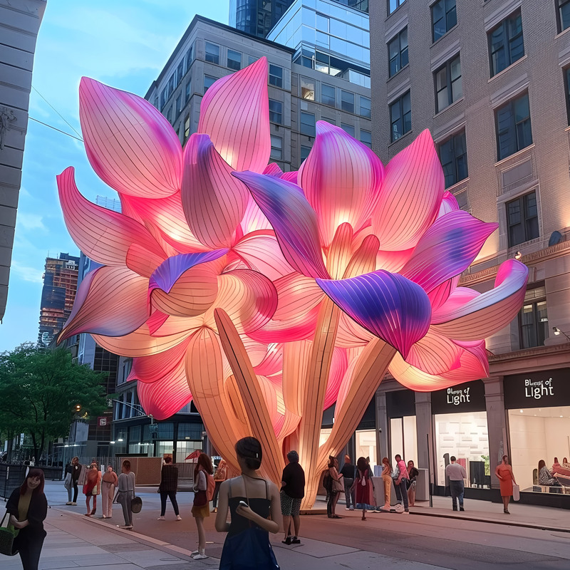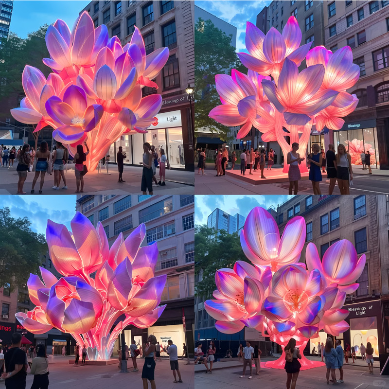 Material: Internal is rust-proof steel frame, copper core wire, acrylic, semi-transparent fabric, light strings.