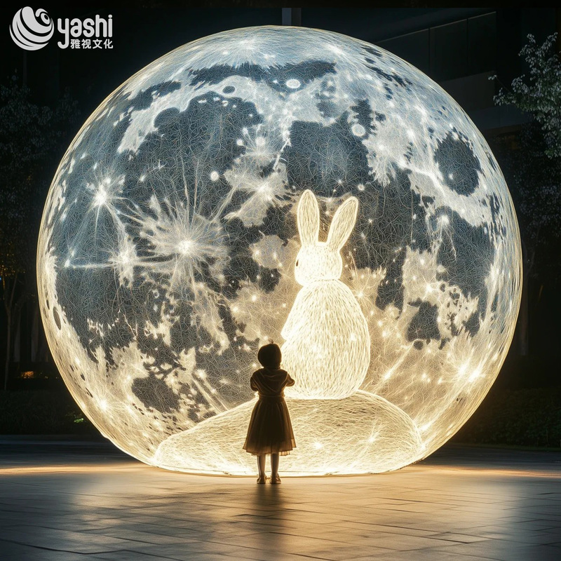Material: Internal is rust-proof steel frame, copper core wire, acrylic, semi-transparent fabric, light strings.