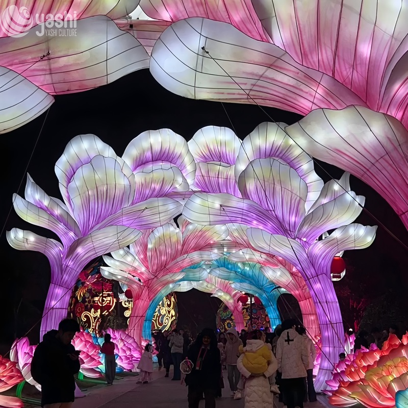 Crafted with durable, weather-resistant materials, it can be customized in size and color combinations to suit parks, scenic pathways, or festival venues. The installation forms a breathtaking floral tunnel, perfect for Spring Festival, weddings, or commercial events, infusing any space with an air of elegance and celebration.