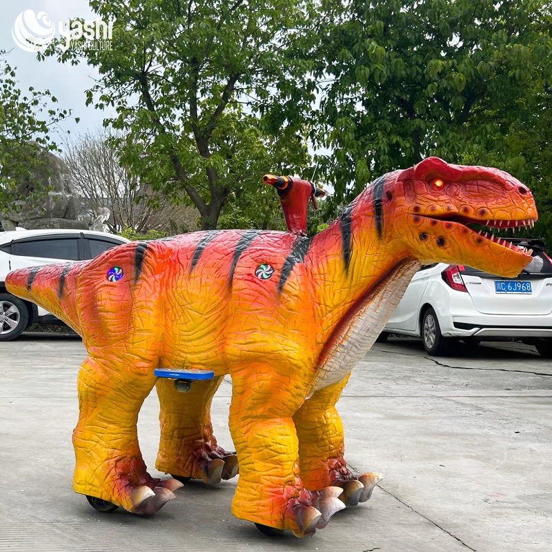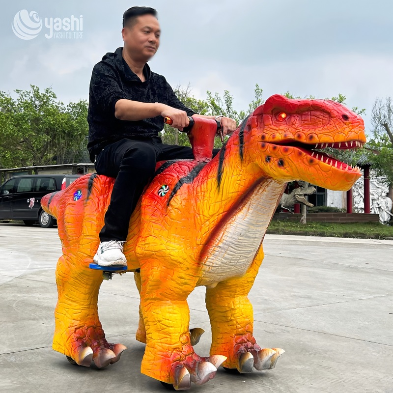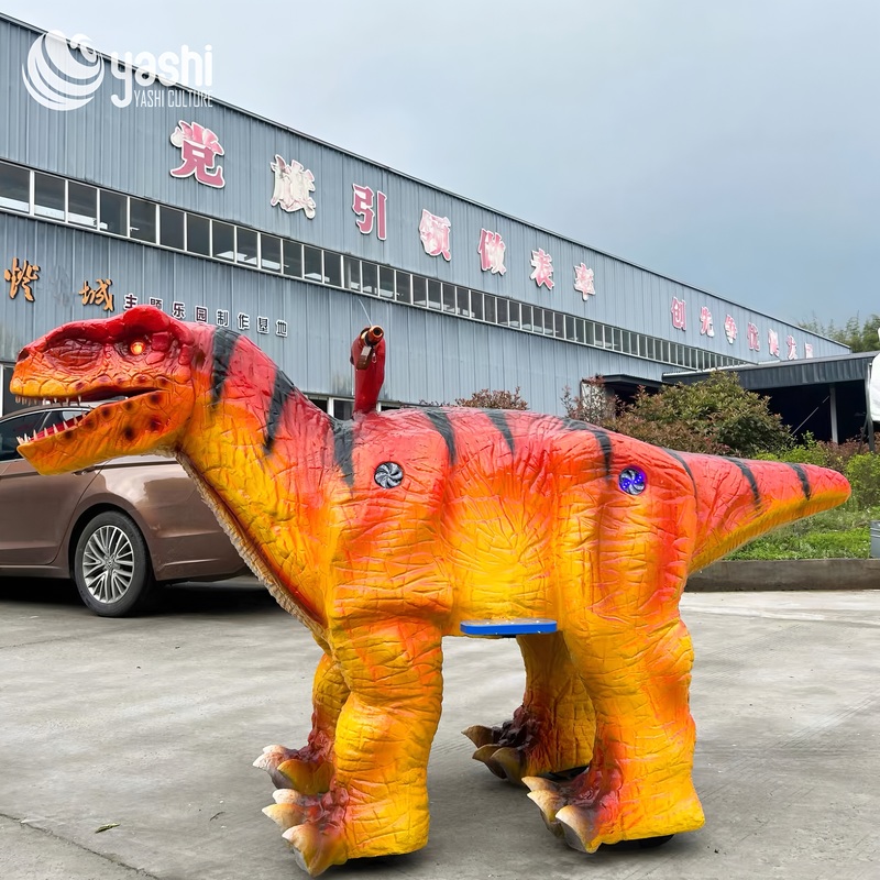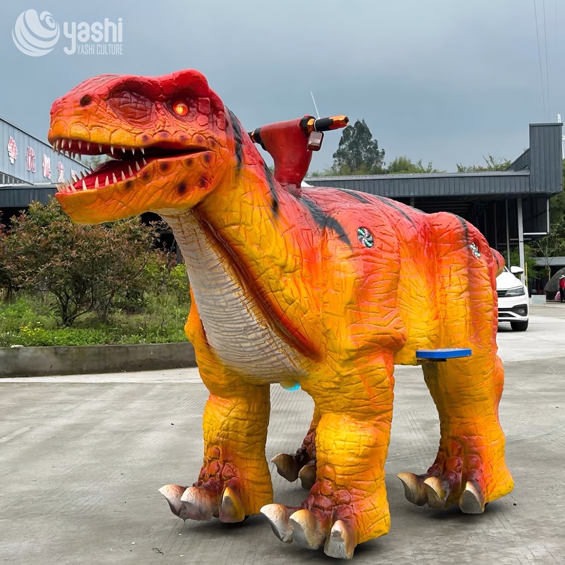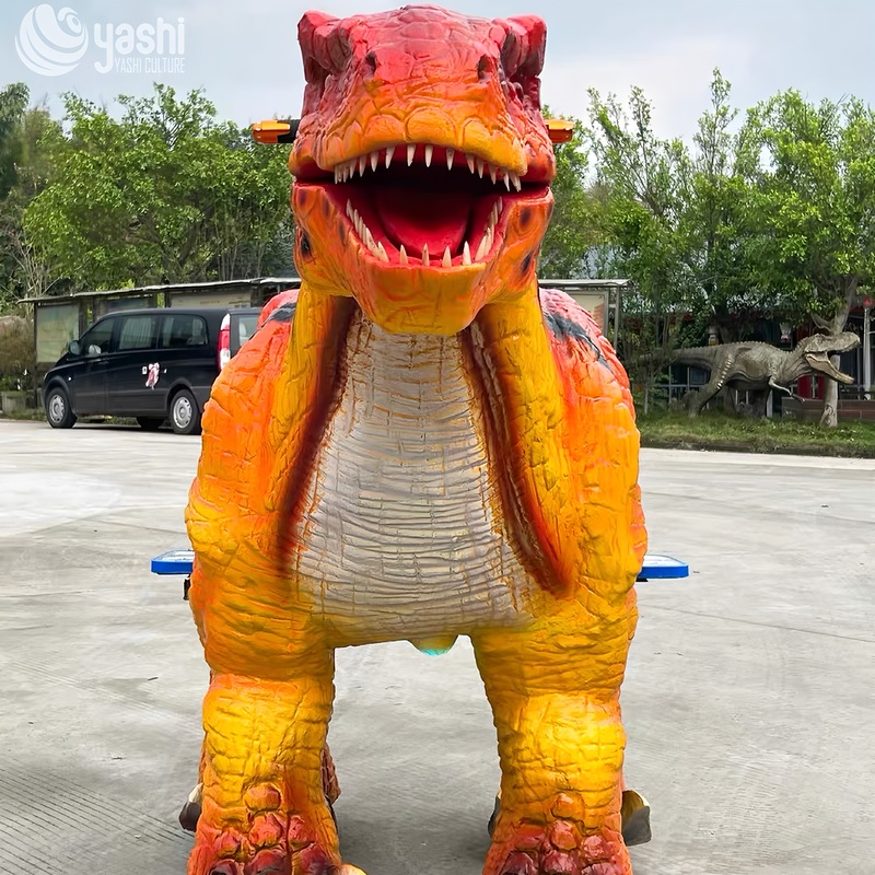 A large-scale outdoor play ride silicone dinosaur with realistic shape and realistic sound.