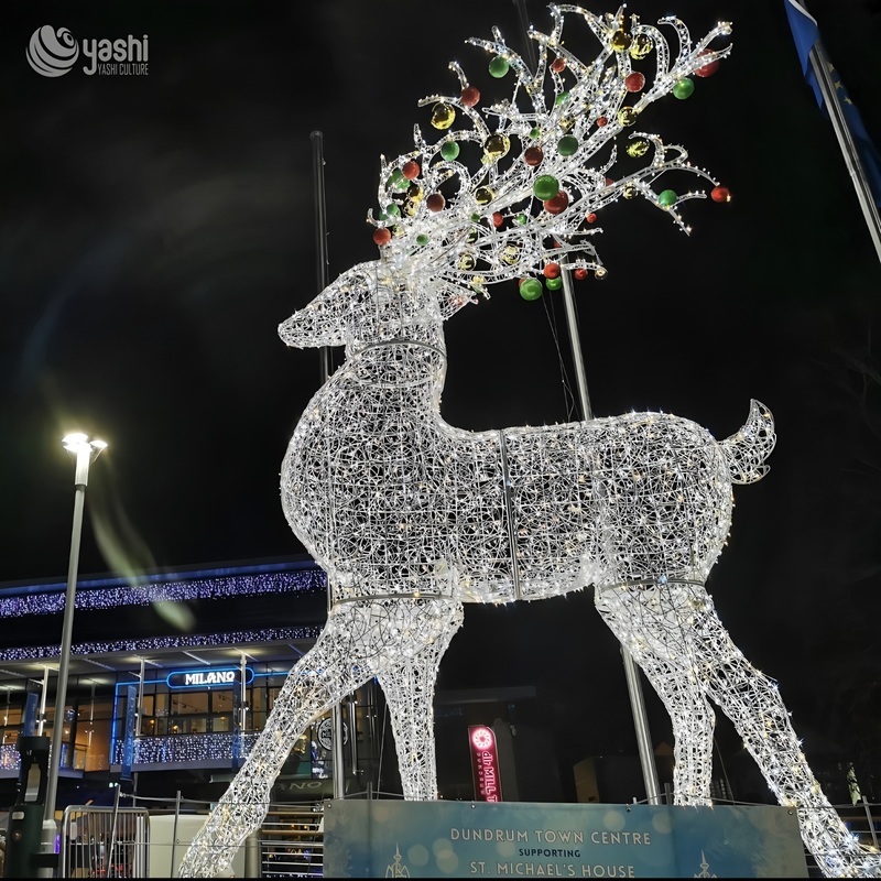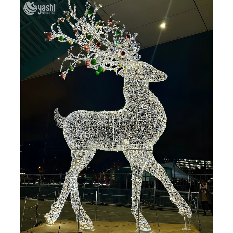 | Material | Rust-proof steel frame, copper core wire, waterproof satin, semi-transparent silk, acrylic paint, LED lighting |