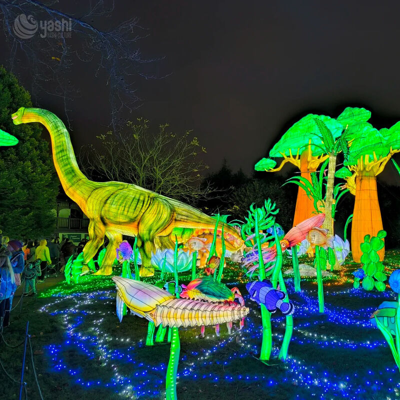 | Material | Rust-proof steel frame, copper core wire, waterproof satin, semi-transparent silk, acrylic paint, LED lighting |