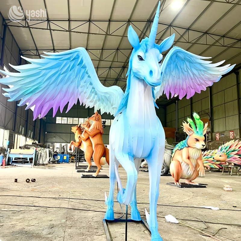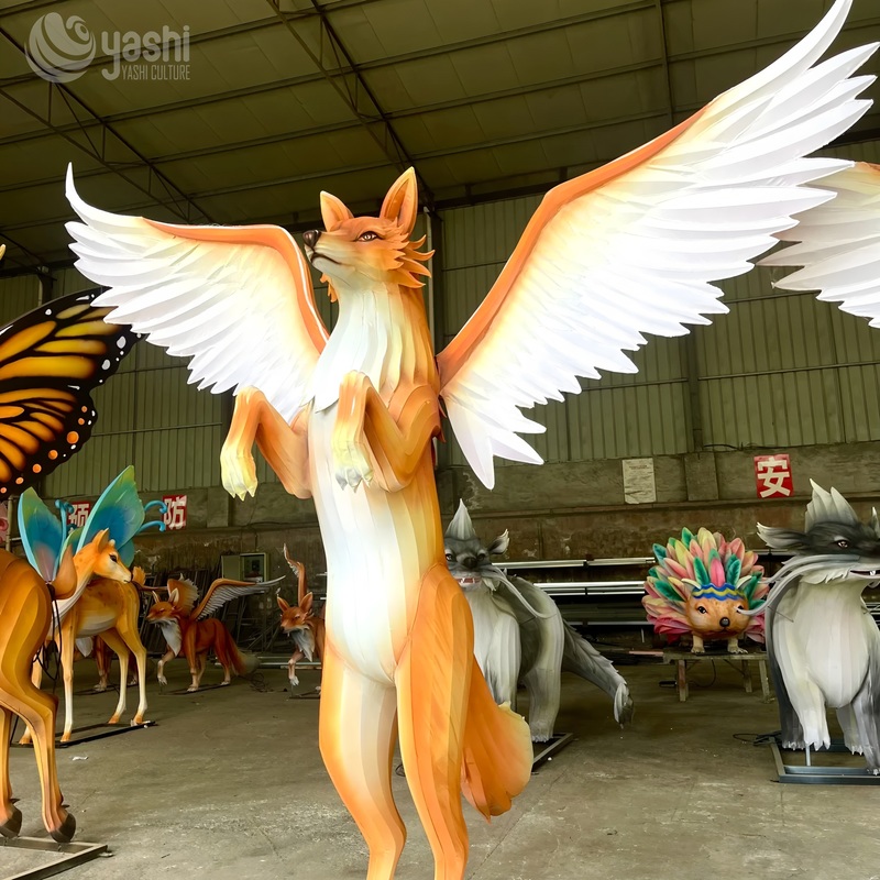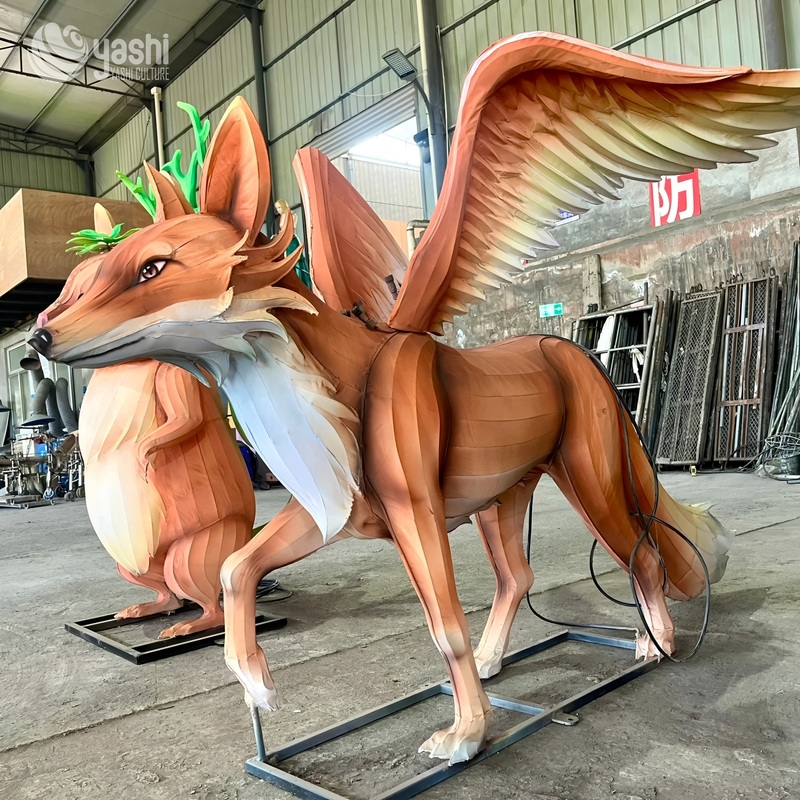 | Material | Estructura de acero inoxidable, alambre de núcleo de cobre, satén impermeable, seda semitransparente, pintura acrílica, iluminación LED |